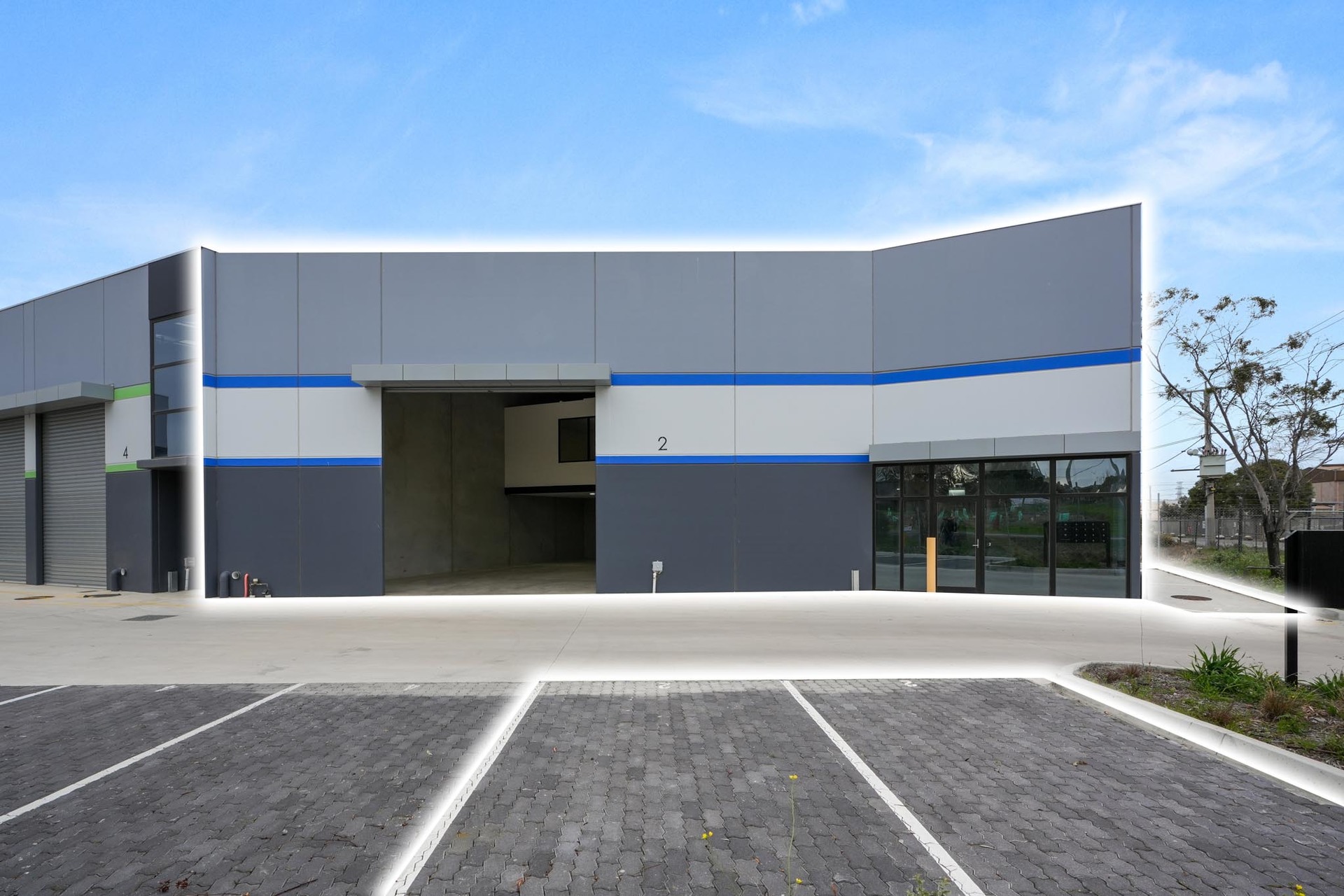 – Container-height motorised roller door for efficient deliveries, dispatch and internal logistics.