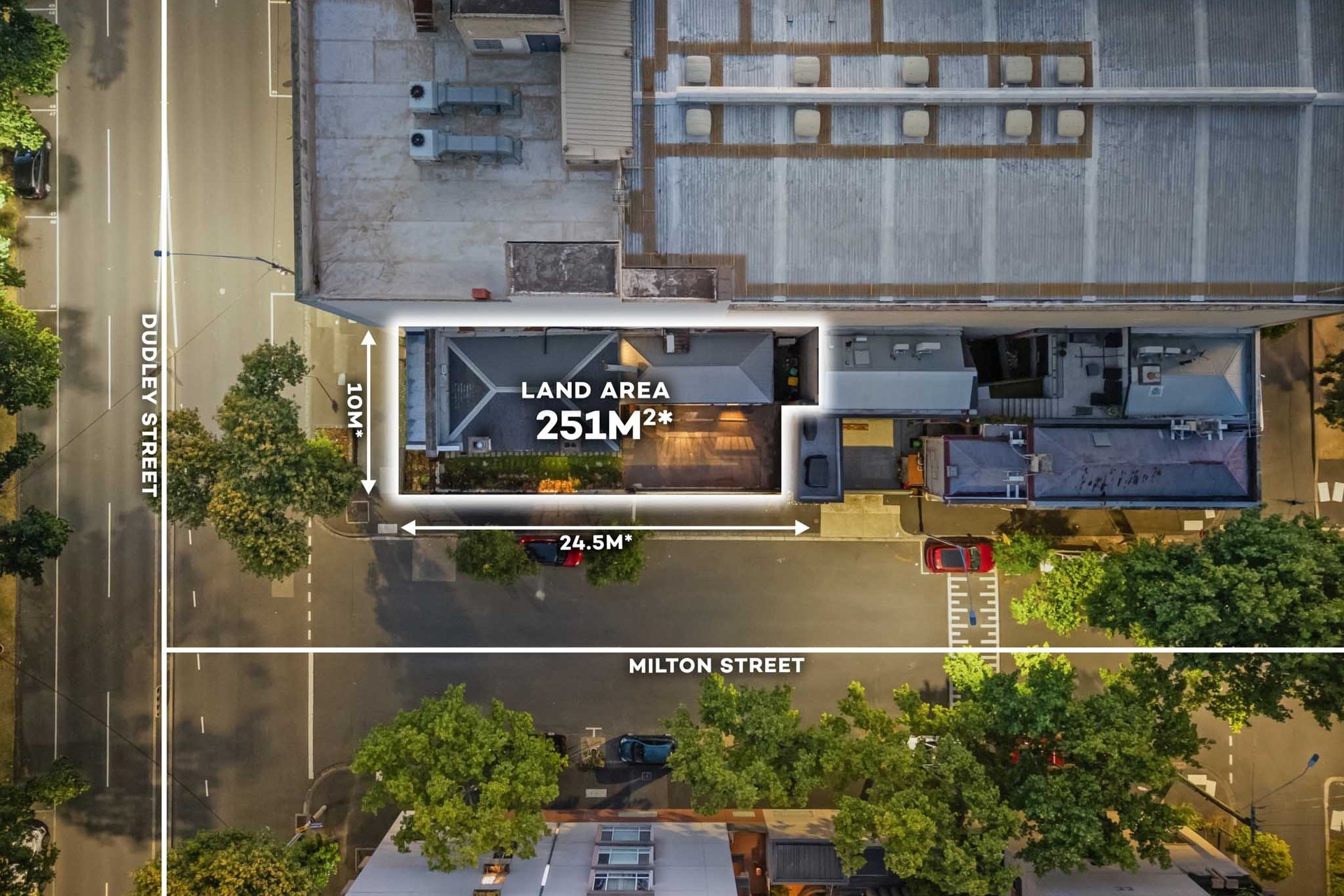 – Occupying a prominent 251sqm* corner landholding with dual frontages to Dudley and Milton Streets, the property commands a striking presence within the streetscape.